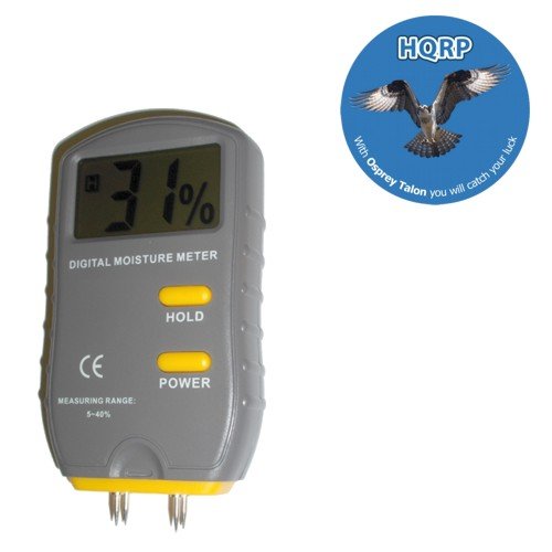Products trademarked HQRP are marketed and sold exclusively by Osprey-Talon. Digital Wood Moisture Meter. - High resolution and response quickly Data hold; - Digital large size LCD display; - Measures the containing water of wood, bamboo, cotton,tobacco, paper, foodstuff etc. General Features: - Digital large size LCD display; - Model # JT-4G; - 4 steel sharp probes; - Test Range: 5% to 40%; - Resolution: 1%; - Accuracy: ??1%; - Measuring Range: 5% - 40%; - High resolution and quickly response; - Can hold value; - Symbol and unit display, read and get conveniencly; - Low battery symbol "-+"; - Power: one 9V battery INCLUDED; - Dimension: 144x94x50mm; - Operation temperature: 0'C to 40'C. Here is our buyer's feedback: I got this for checking firewood. Works greatThis website is a participant in the Amazon Services LLC Associates Program, an affiliate advertising program designed to provide a means for sites to earn advertising fees by advertising and linking to amazon.com